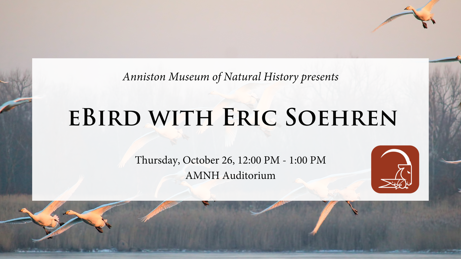 The Alabama Tourism Department deemed 2023 as The Year of Alabama Birding. Learn how beginner and seasoned birders can use eBird to learn more about Alabama’s 425+ species of birds and how their use of the program helps researchers and conservationists. Eric Soehren is an ecologist and manager of the Wehle Land Conservation Center in Midway, Alabama. He is actively involved in several conservation organizations, including the Alabama Ornithological Society and the Inland Bird Banding Association.