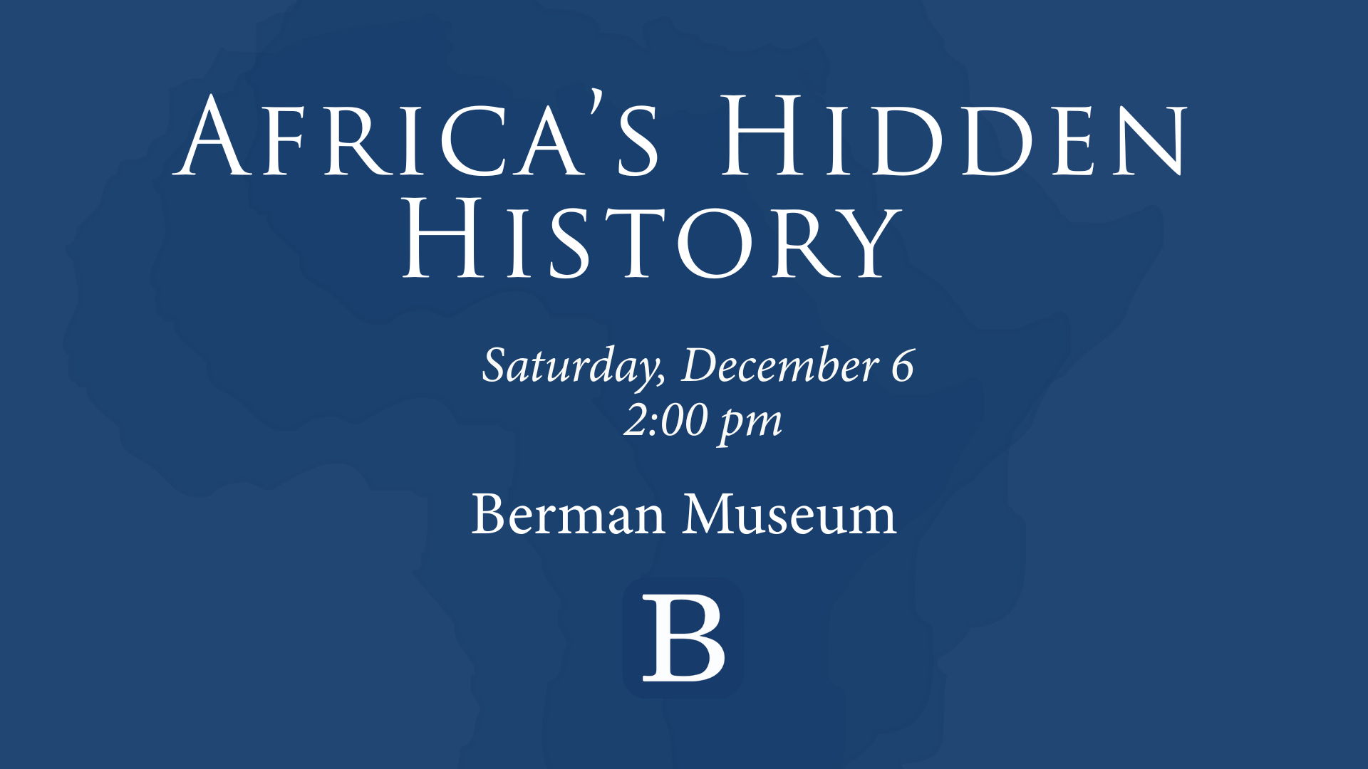 Join Berman Museum intern, Ana Ruiz, for an engaging exploration of the Bight of Biafra — a region in eastern Africa that includes modern-day Nigeria, Equatorial Guinea, Cameroon, and Gabon. Discover its rich cultural heritage and how its story continues to shape our world today. This program will also feature a historic map of the region from the Berman Museum collection, offering a unique look at how the area was viewed and understood during its time.
