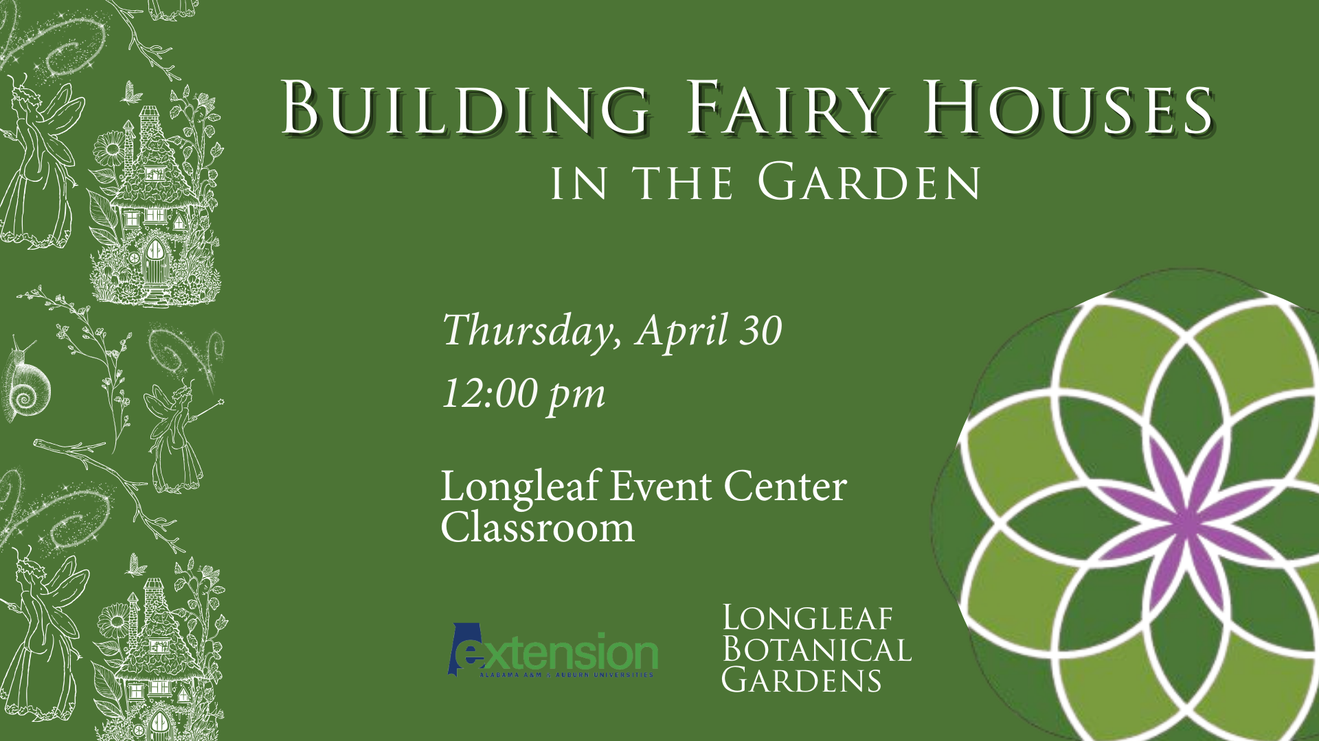 Join us for an enchanting hands-on experience led by Renee Simmons Raney, Chief of Education for Alabama State Parks, and author of Hairy, Scary, but Mostly Merry Fairies! Curing Nature Deficit Disorder through Folklore, Imagination, and Creative Activities.