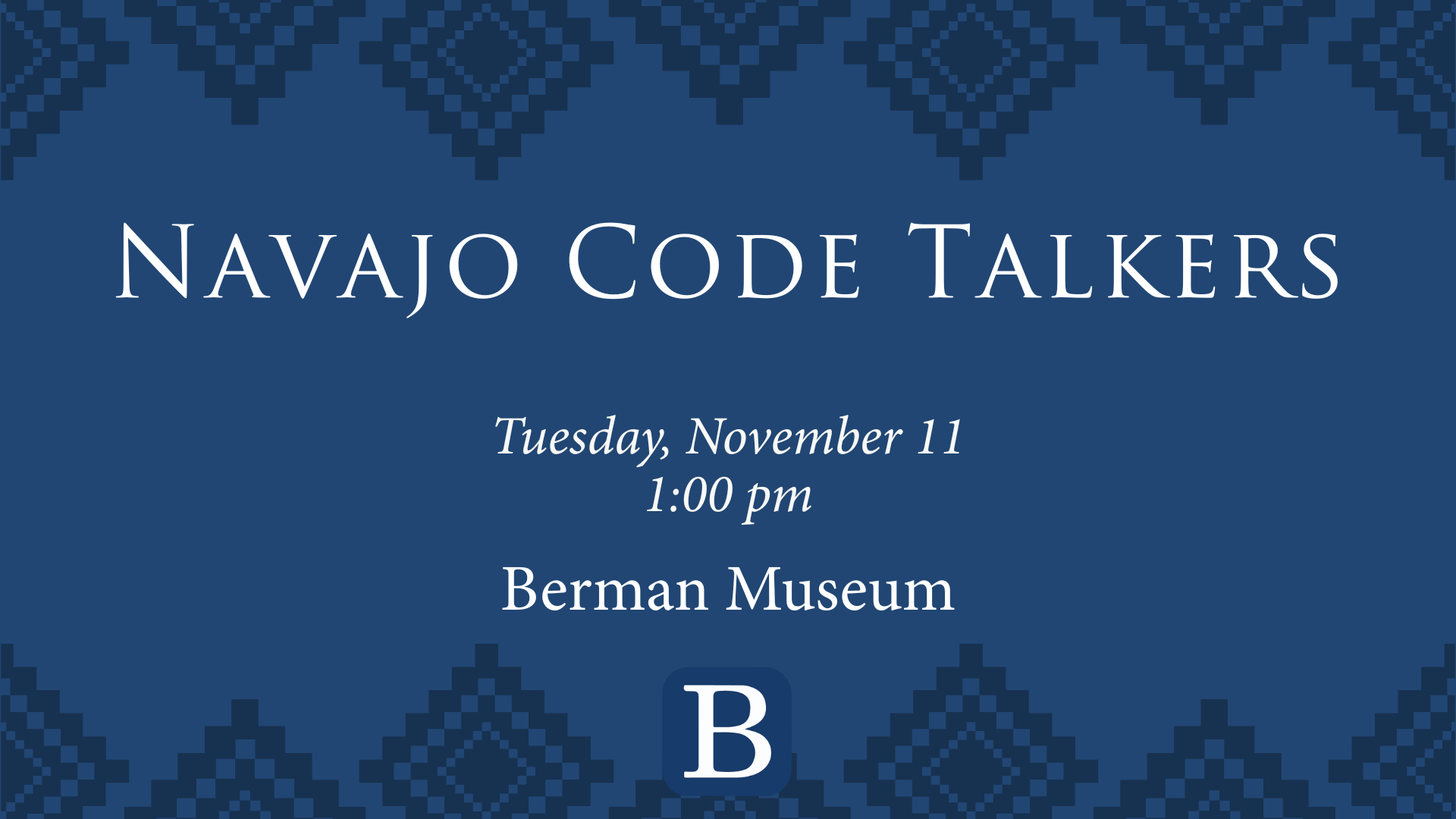 Join the Berman Museum and Collections Manager Alex Campbell in celebrating Native American Heritage Month and Veterans Day as we explore the extraordinary legacy of the Navajo Code Talkers. This elite group of U.S. Marines developed and used a code based on the Navajo language to transmit secure messages during World War II, playing a vital role in the success of U.S. forces in the Pacific. Visitors will also have the chance to test their skills by attempting to decrypt a secret message using the original Code Talkers’ dictionary.