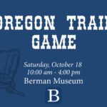 - 18Oregon Trail Game10:00 am - 4:00 pmThe classic video game Oregon Trail comes to life in our life-sized, interactive dice game at the Berman Museum. See if you can beat the odds by making it all the way to Oregon without dying of dysentery, typhoid fever, or other dangers that travelers of the trail encountered. A new wagon party will leave every hour on , ...