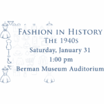Learn about the fashion of the 1940s with one of our educational interpreters. Discover how WWII impacted trends during wartime, and how fashion evolved after the war ended featuring artifacts from the Berman collection. This program is included with museum admission and free for AM&G members. , ... - 1