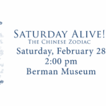 Celebrate the Year of the Fiery Horse with us at the Berman Museum! Enjoy a fun-filled day featuring colorful Lion Dances at 11:00 a.m. and 12:00 p.m., hands-on crafts and activities, and tasty samples of traditional foods. Bring the whole family to explore the sights, sounds, and flavors of this joyful holiday. Come a , ...Saturday Alive! The Chinese Zodiac2:00 pm